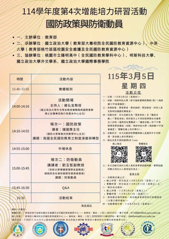 四、報名期間:即日起至115年3月2日。 歡迎有興趣之教職員工報名。