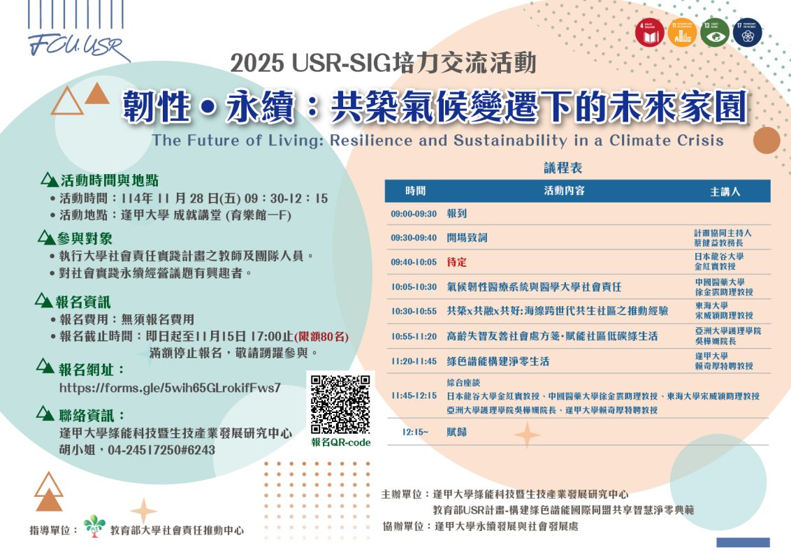 「韌性.永續:共築氣候變遷下的未來家園」SIG跨校共培活動Post category:學務處公告 / 最新消息 / 行政單位公告 / 衛生組公告Post published:2025/11/05Post author:twvstn303詳見公文「韌性.永續:共築氣候變遷下的未來家園」SIG跨校共培活動-公文下載 Post Views: 8
