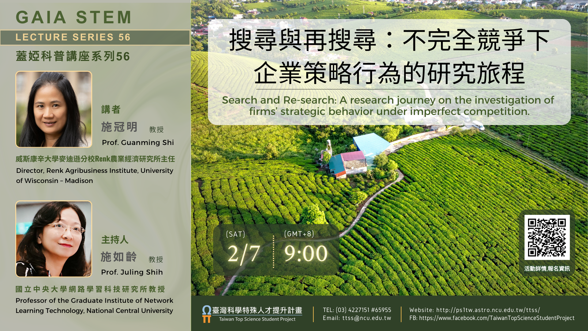 - 《蓋婭科普講座系列 56》活動訊息如下: