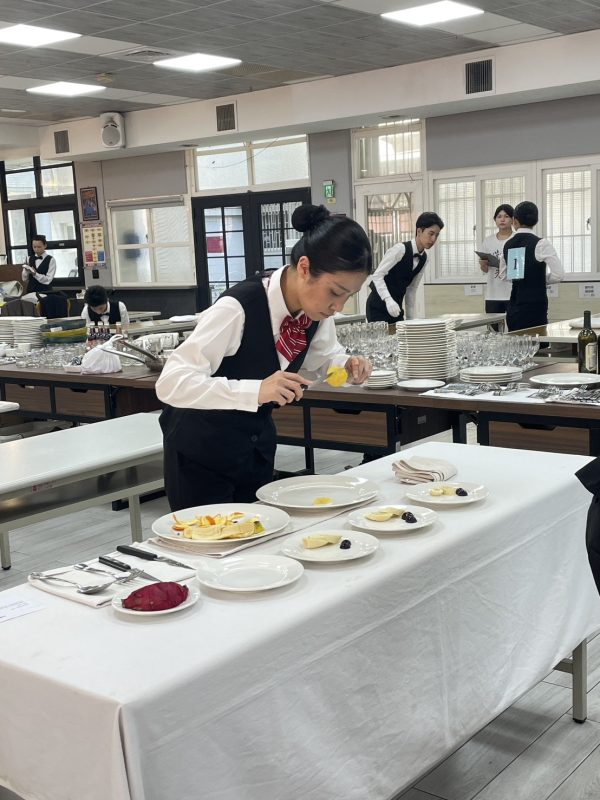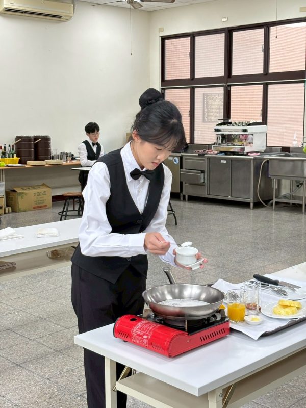 狂賀🎉第56屆全國技能競賽南區分區賽~本校餐飲服務選手雙獲獎!!Post category:教學單位公告 / 最新消息 / 榮譽榜 / 餐飲管理科公告 / 餐飲管理科榮譽榜 / 餐飲管理科競賽成果Post published:2026/03/28Post author:餐飲管理科主任🎉第56屆全國技能競賽南區分區賽【餐飲服務】雙獲獎🎉🍾競賽項目:展桌圍鋪、口布摺疊、酒類辨識、餐桌擺設、鱸魚切割、酒類調製、水果切割、火焰鳳梨、咖啡製作。🍸參賽選手:餐二甲—陳玟倢 榮獲🥇第四名 🚀【晉級全國賽】餐二甲—張詠晴 榮獲🏅佳 作👏感謝 張如雯老師 及餐飲科全體教師共同指導👏 Post Views: 101
