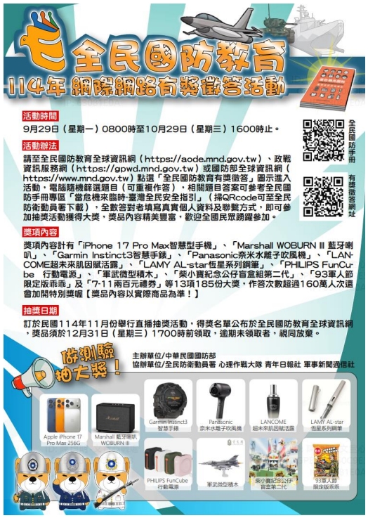 114年全民國防教育「網際網路有獎徵答活動」