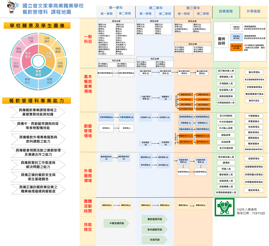 三年級適用🗺️112餐飲管理科課程