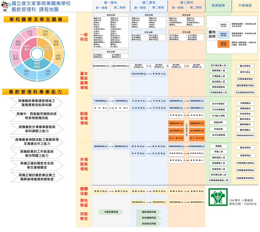 二年級適用🗺️113餐飲管理科課程